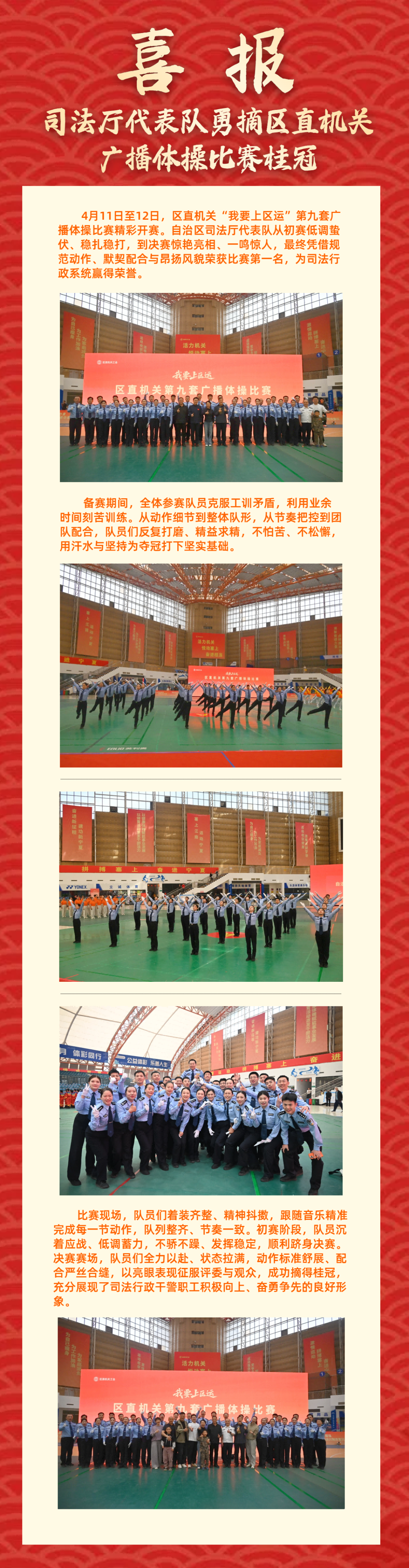 石嘴山监狱警察出战“我要上区运”!宁夏司法厅代表队勇摘区直机关广播体操比赛桂冠