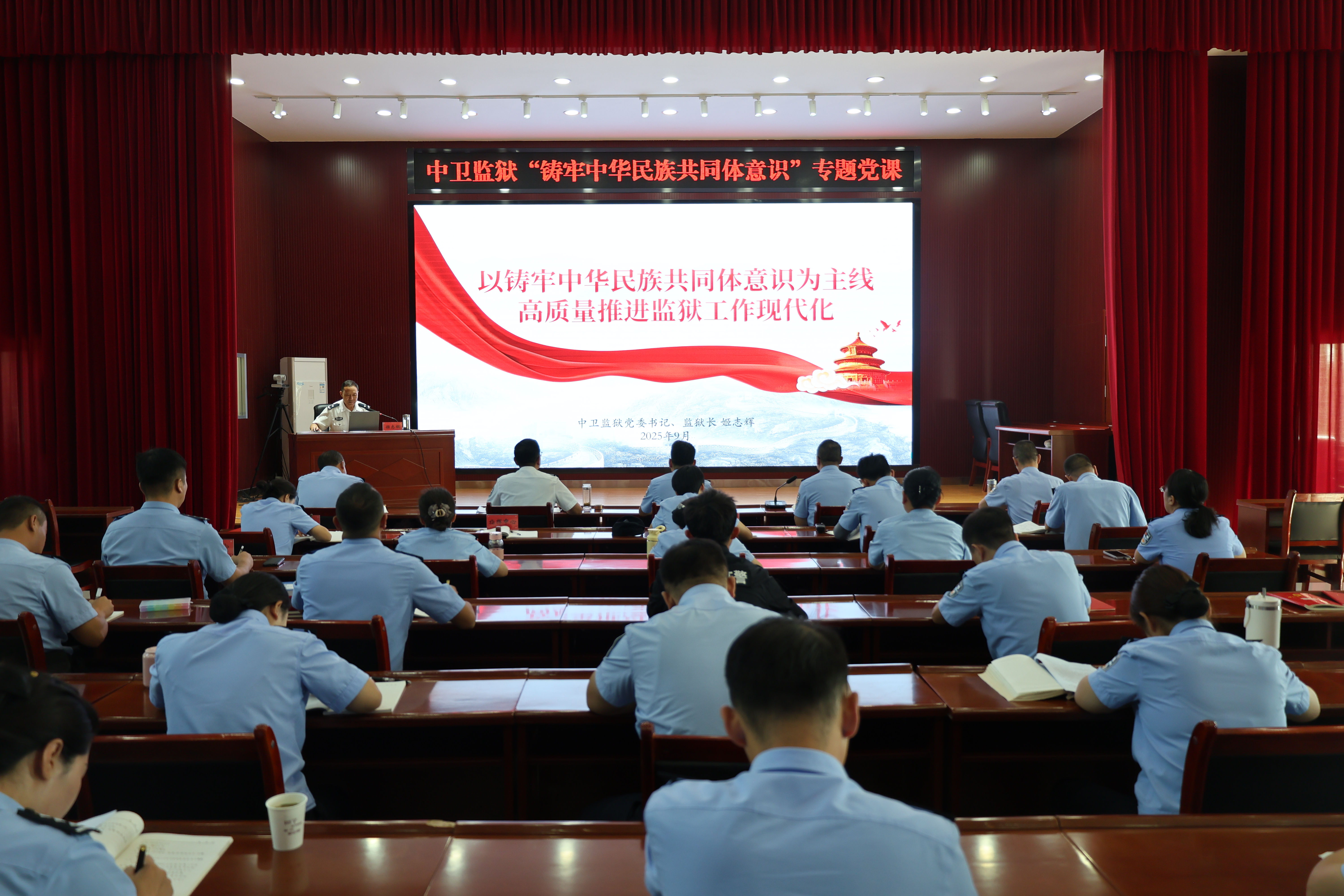 中卫监狱党委书记、监狱长姬志辉以《以铸牢中华民族共同体意识为主线 高质量推进监狱工作现代化》为题为全狱党员警察职工讲授专题党课。党课紧紧围绕铸牢中华民族共同体意识的理论内涵与战略定位、中华民族共同体意识的形成脉络与文明根基、以铸牢中华民族共同体意识助推监狱工作高质量发展的关键举措三个方面内容,生动地阐释了铸牢中华民族共同体意识的重要意义,进一步引导全体党员警察职工理清铸牢中华民族共同体意识思想脉络,夯实铸牢中华民族共同体意识的思想根基,用心用情做好罪犯教育改造工作,始终把维护监管安全作为铸牢中华民族共同体意识、推动监狱高水平安全和高质量发展的重要保障。