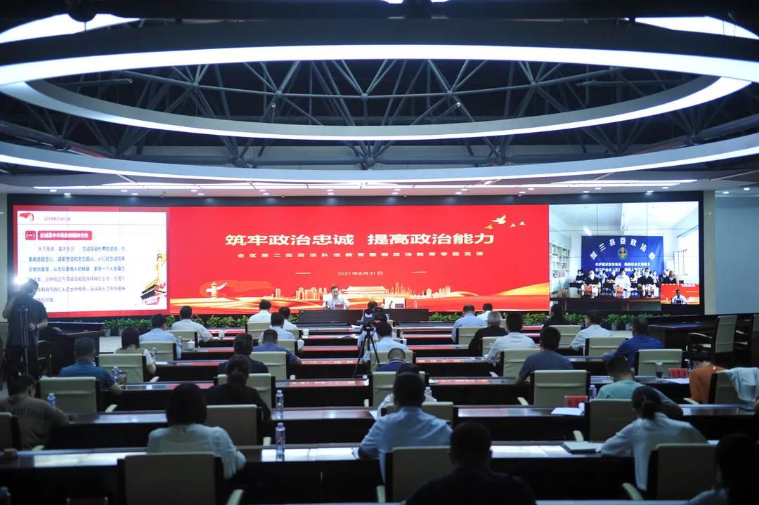 8月31日,按照全区第二批政法队伍教育整顿总体部署,结合党史学习教育,自治区党委常委、政法委书记、全区政法队伍教育整顿领导小组第一副组长赖蛟为全区政法干警作政治教育专题党课。这既是贯彻落实习近平总书记“七一”重要讲话精神的重要举措,也是第二批政法队伍教育整顿的重要内容,旨在引导全区政法干警筑牢政治忠诚,提高政治能力,以实际行动进一步增强“四个意识”、坚定“四个自信”、做到“两个维护”,示范带动全区第二批政法队伍教育整顿走深走实。