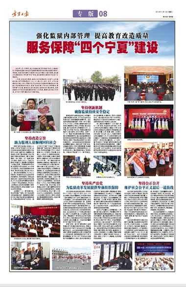 (二)进一步拓宽政务(狱务)信息公开途径。2016年12月5日,宁夏监狱互联网门户网站(宁夏监狱,网址:www.nxjyw.gov.cn)正式上线试运行。网站设计遵循政府门户网站“简洁、易用、美观”的设计标准;强化资源整合,优化页面表现形式,紧跟门户网站发展趋势;网站共设立新闻中心、信息公开、专题栏目、互动交流、下属单位和办事指南6个一级栏目;同时提供网上咨询、监督投诉、民意征集和局长信箱等互动功能。
